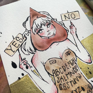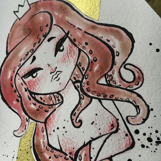 These illustrations were created on 2017 with black ink applied with a stick taken from a tree, golden ink and watercolor.